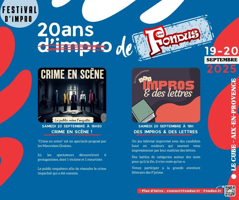 Cette année, l’association Les Fondus célèbre deux décennies de passion pour l’improvisation théâtrale avec un festival unique qui rassemblera spectacles, surprises, et souvenirs !
