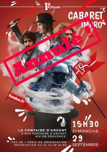 En ce jour de fête de la musique, le Cabaret-Impro sera à un horaire exceptionnel vous permettant de continuer la fête dans Aix, et avec une formule exceptionnelle spectacle + boisson pour 12 € (+ frais de réservation éventuels)