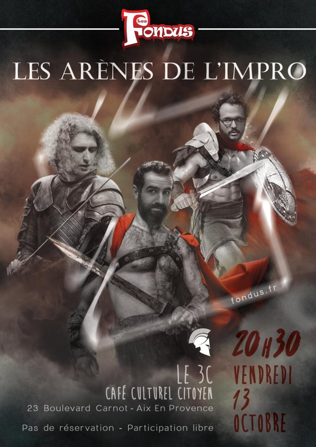 Les Fondus, coorganisateurs avec Duranne Animation et Mimethis et Catharsis, vous proposeront un match d’improvisation face aux Istréeens, ainsi que la dernière représentation du repas des fauves, de Vahé Katcha.